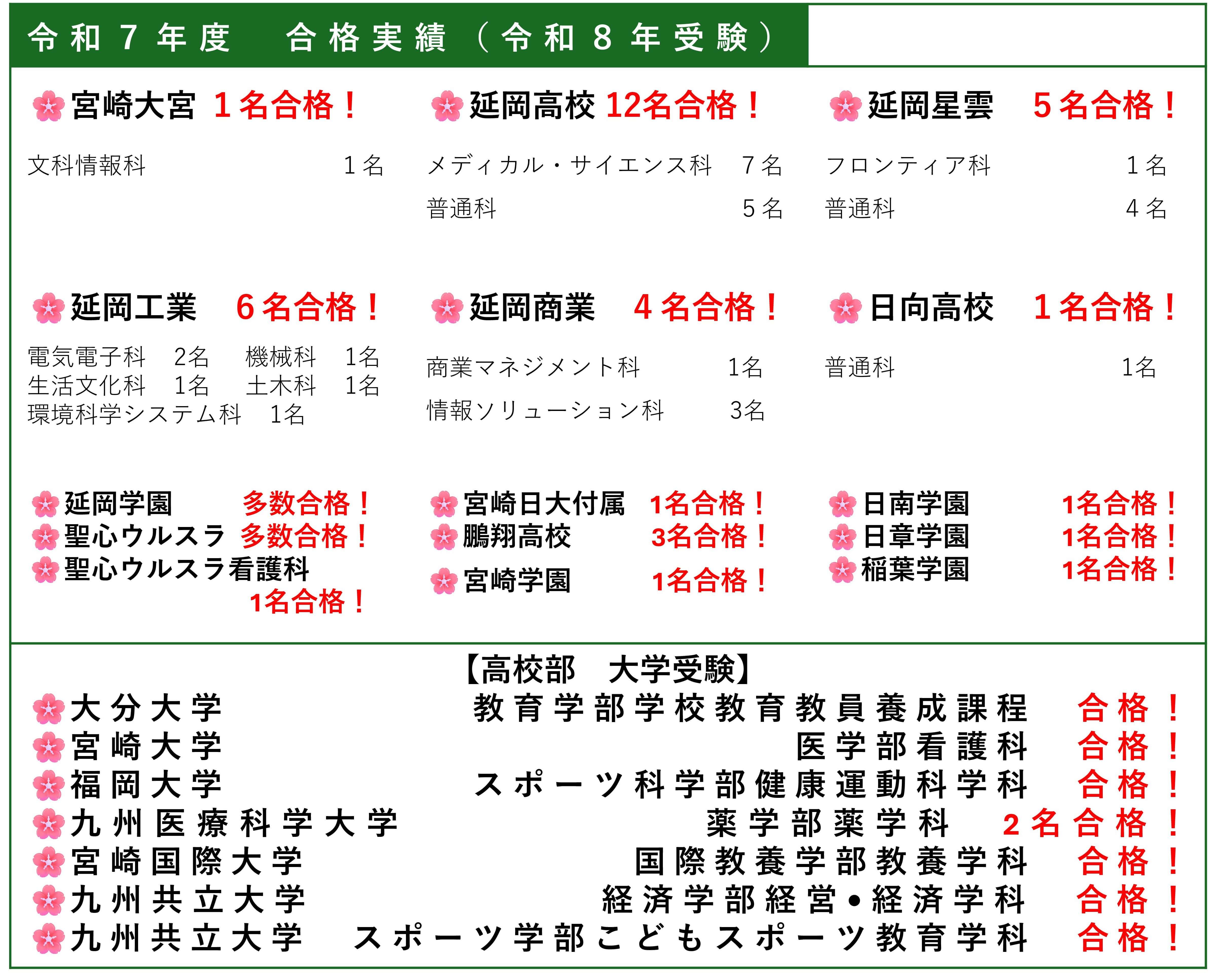 延岡市の小学生・中学生・高校生向け学習塾です。