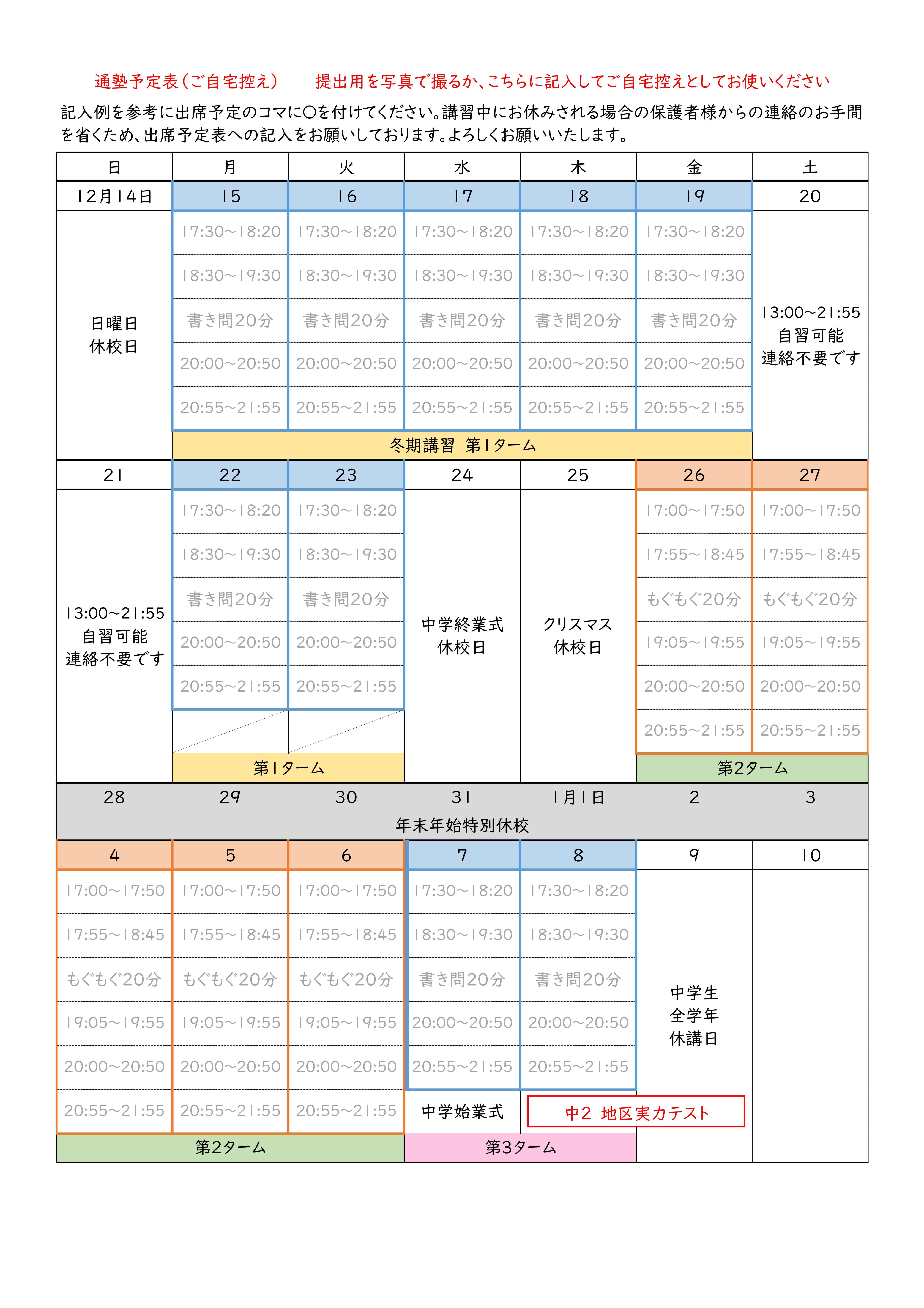 延岡駅前校 12月スケジュール